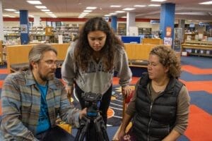 Chemung County Library District Makerspace offers free community spaces for technological training, including computer labs equipped with video editing software. Makerspace Specialist Steve Smith assists with training participants in Adobe Premiere Elements and managing the check-out of filming equipment.