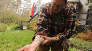- Nat Smith, Director of Mutual Aid Wildlife Rehabilitation Center, in their home garden.
