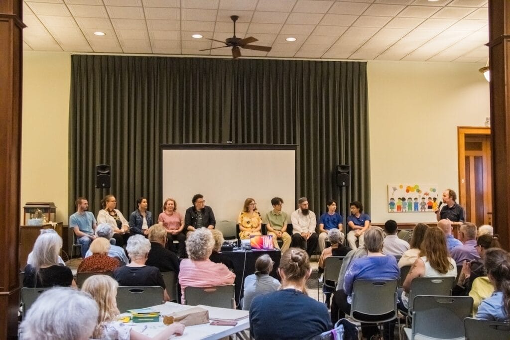 The Celebration of Cultures took place October 14, 2023, a week after conflict broke out between Hamas and Israel. Knowing this moment would affect the recorded interviews that day, T.C. reached out to community scholar Imam Marwat that morning to ask for his guidance on how the young people should approach their documentation efforts. He explained that local news outlets had been coming to IAFL that entire week asking for statements on the conflict, and that it’s often the case that the media only engage their community in moments of strife in the Middle East or when moments of Islamophobia arise in the U.S. “We have been planning this as a day of unity and celebration for nine months,” said Imam Marwat, “and we don’t want today to be impacted by the event.”