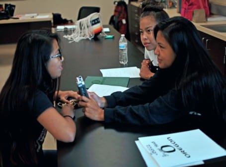 While our talk with Ken gave us confidence to pitch the field school to families, the actual encounter was extremely challenging. The room filled with parents and students. Ken introduced us, and I introduced OFN as the state’s folk and traditional arts program. I listed all OFN’s prior collaborative work in digitizing valuable tribal archives with Valerie’s staff. We drew connections between OFN’s documentation of their tribes’ master artists for our traditional arts apprenticeship program and the field school project, which was for students to document tribal elders and contribute that work to the CTWS archival collection. Despite what seemed an impressive foundation for ongoing partnership, neither students nor parents reacted much or provided feedback to my over-the-top introduction. The reticence was palpable and evidence that we had no actual relationship with these young people and their families. Parents had absolutely no reason to trust us with their children or this project. I was talking at them instead of having a conversation with them. Emily Ridout and Makaela spoke next about the details and passed out registration paperwork for parents and students to complete. That got a bit more chatter, and we answered questions one-on-one. Those beginning conversations were the actual start of our relationships with students; it was the field school experience itself, with Anne Pryor, Emily Ridout, and Makaela, that created an essential, in-depth rapport with the students.