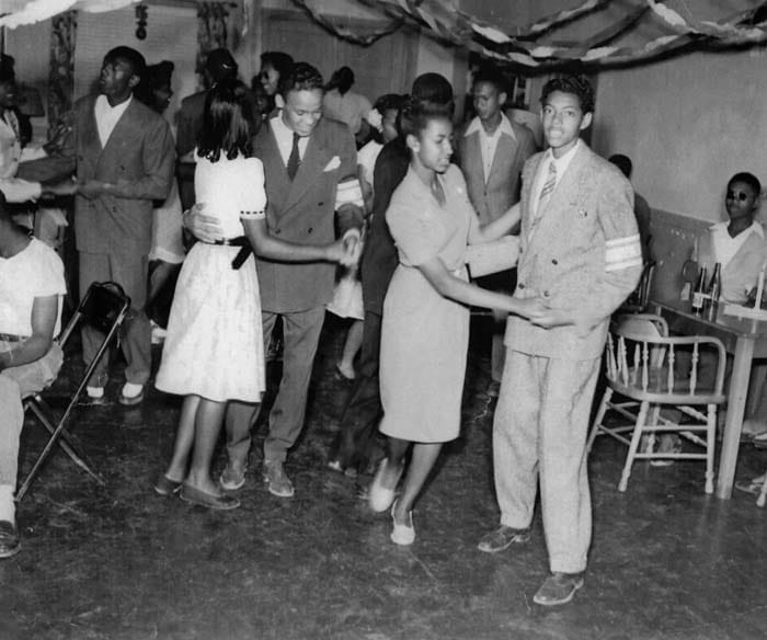 Dance at the Dunbar School, 1947, Front left: Della Devereaux, front right: one of the Fleming twins. Photo courtesy of Dunbar Pavillion.