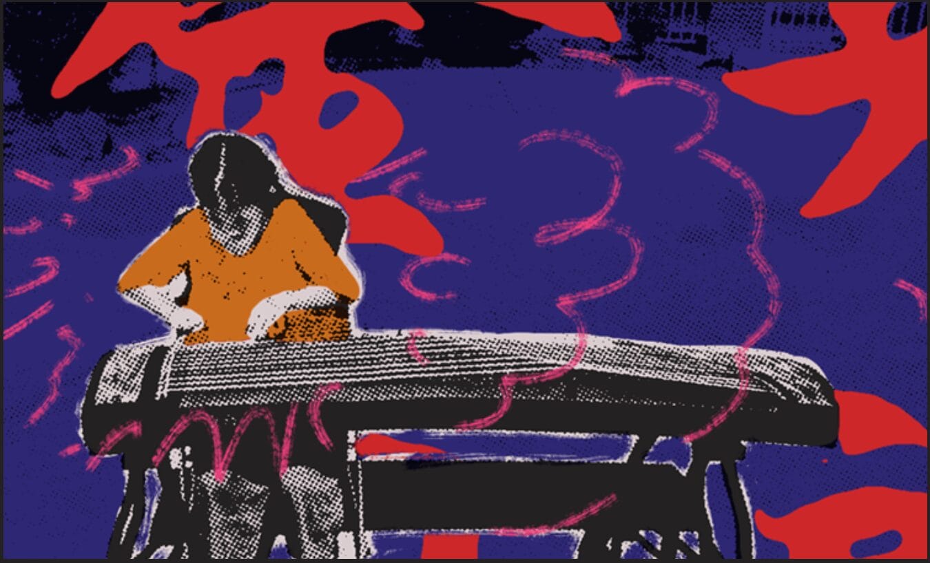 - Website graphic for Tucson Chinese Cultural Center of young girl playing the guzheng. Art by Max Mijn, Arizona State Museum.