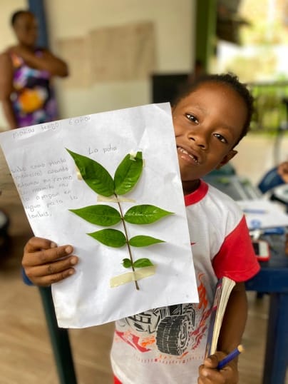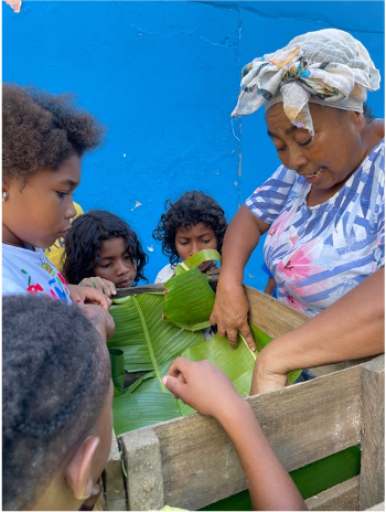 In response to these needs, the local School of Ancestral Knowledge emerged as a space that allows the children who still live in Coquí to engage not only in traditional trades but also in the community projects of their territory, promoting organic learning of traditional crafts through practice. The School of Ancestral Knowledge fosters a space for the community elders to teach local trades through an environmentally centered and holistic education; it is a platform to provide pedagogical content designed by and for the territory. This process has resulted in academic outings to fish and explore the jungle, documenting plants through art, creating original dances and songs, building the community garden of the Coquí School, and training children to be tour guides for the Museum of Coquí, a platform to show and reflect on the natural and cultural heritage of the Pacific Region of Colombia.