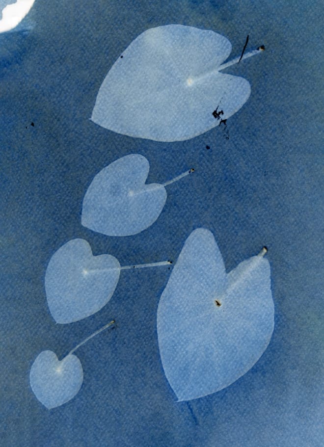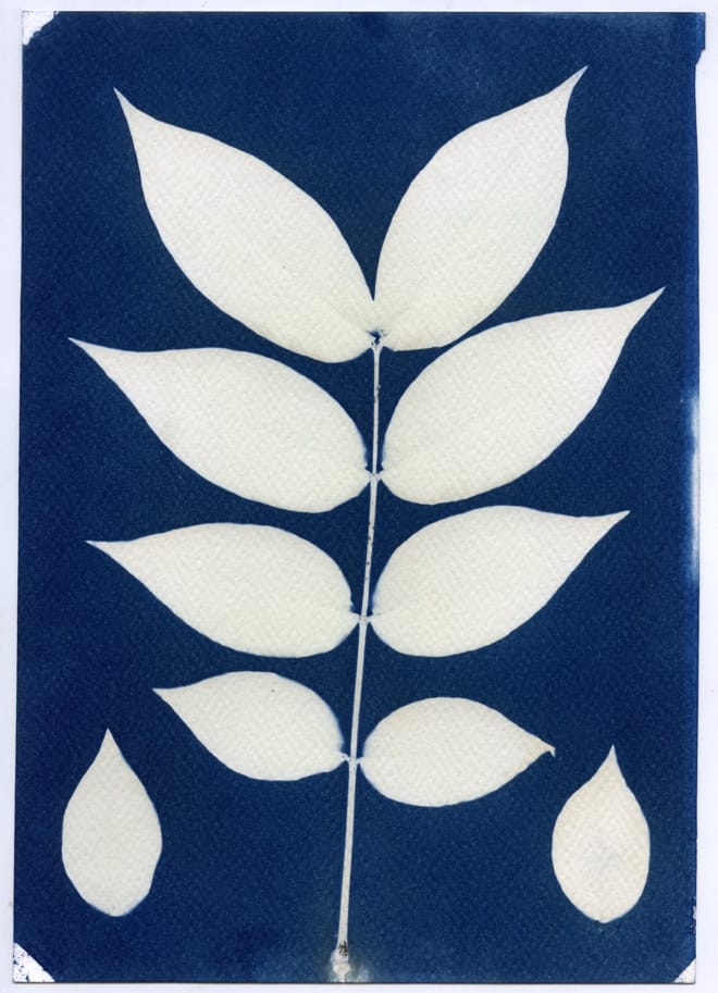 Cyantotypes of Matarratón Gliricidia sepium, Coca Erythroxylum coca, Papa Achín Colocasia Esculenta.