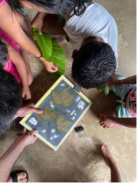 In October 2024, the project’s workshops culminated in a weeklong exercise in which elders, children, and mediators made cyanotype photograms of more than 50 different plants, reinforcing among the children the ability to identify myriad botanical species and effectively creating a visual catalog of the Herbarium for future practical and pedagogical uses.