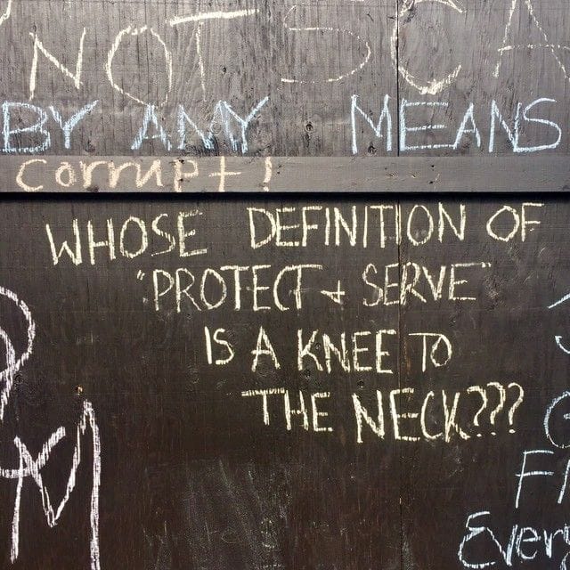 Audience Question: I have a question…my family is from up north, and on Facebook I’m getting a lot of, you know, thin blue line–stand with the police, that kind of posts. Have there been those kinds of street art messages almost as a counter to the George Floyd?